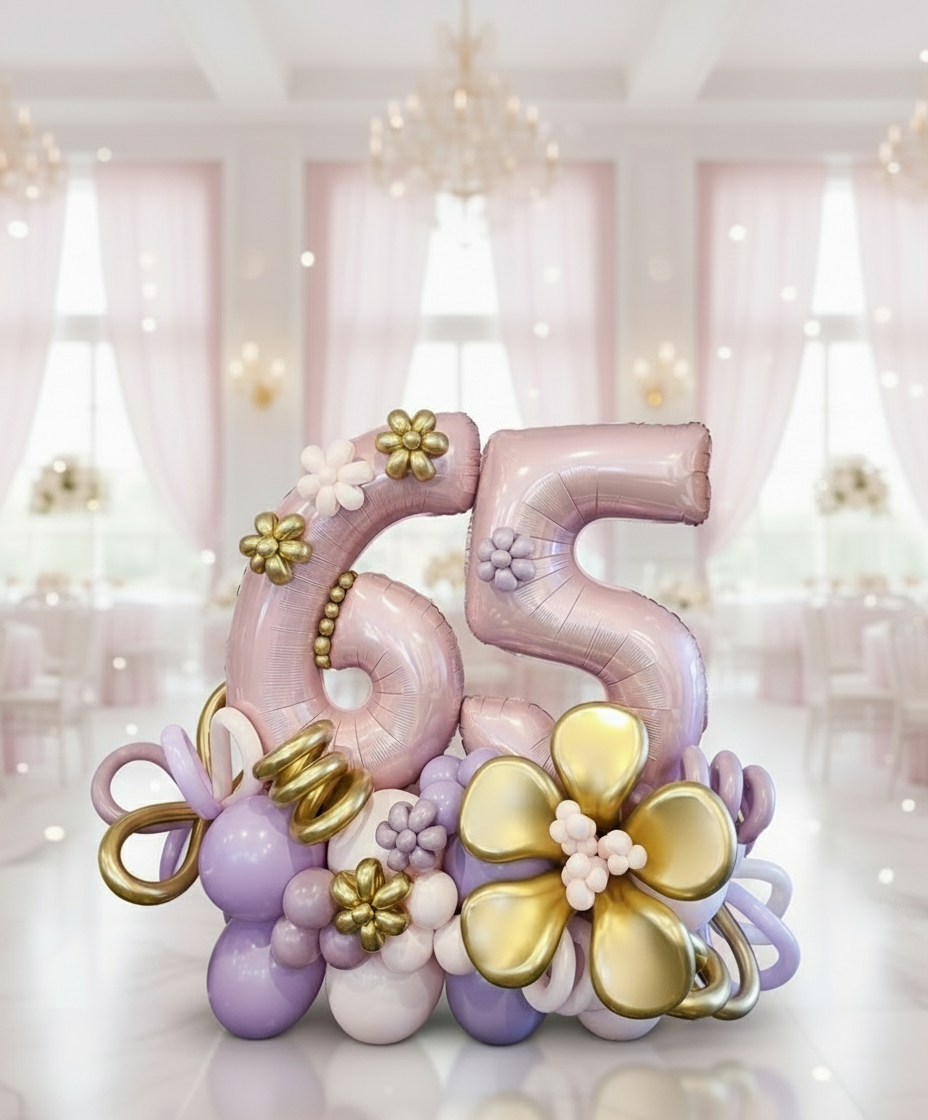 Elevate your birthday celebration with this eye-catching and customizable balloon arrangement!