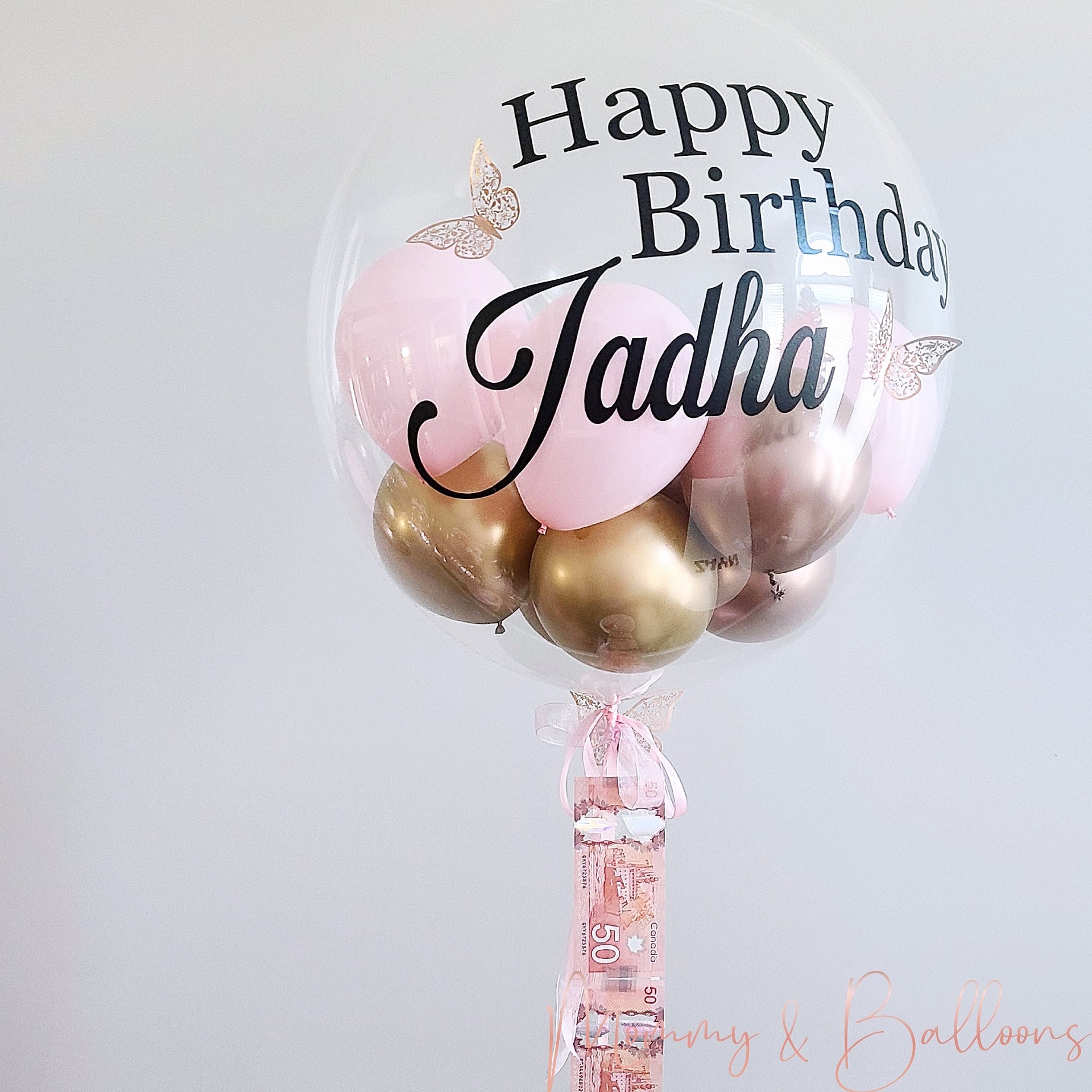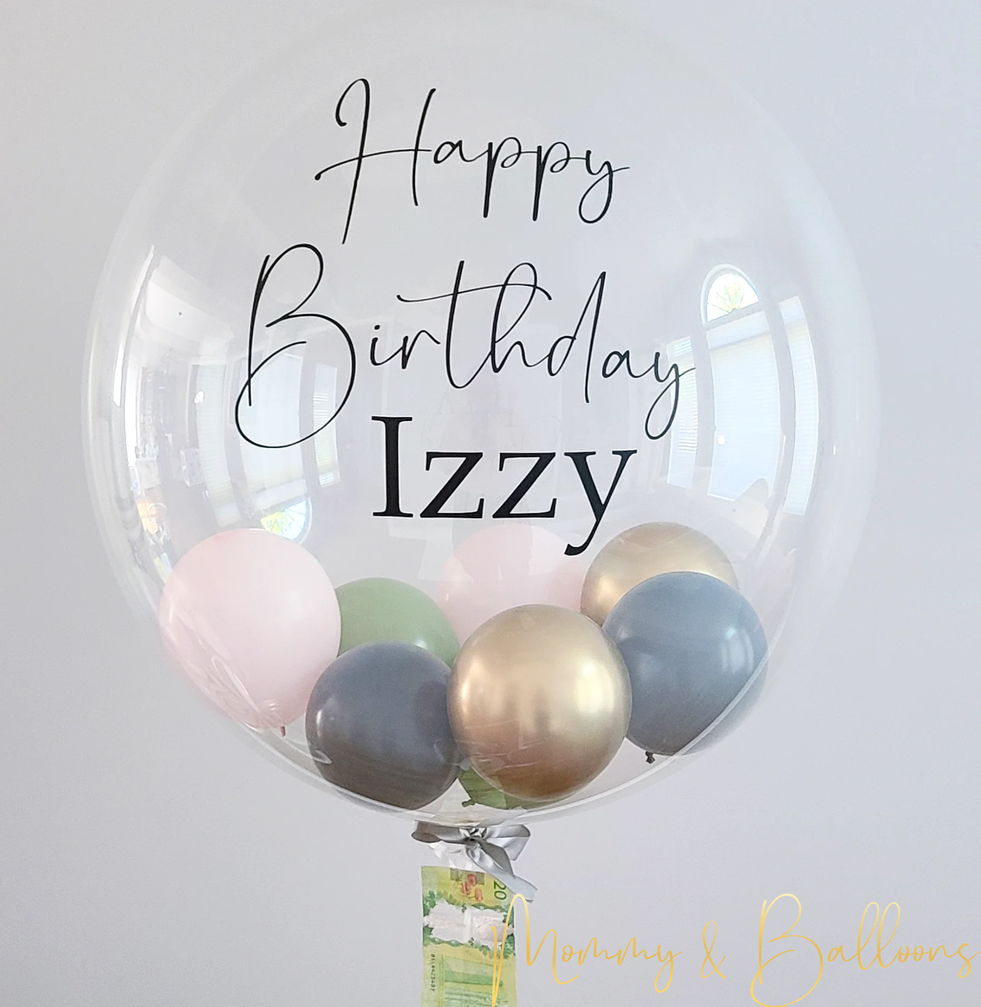Introducing our MONEY Balloon – a perfect blend of elegance and surprise! Customize it with personalized writing, small balloons, feathers, or confetti inside a bubble balloon. Attached to the string is a hidden cash gift, making it the ultimate surprise.